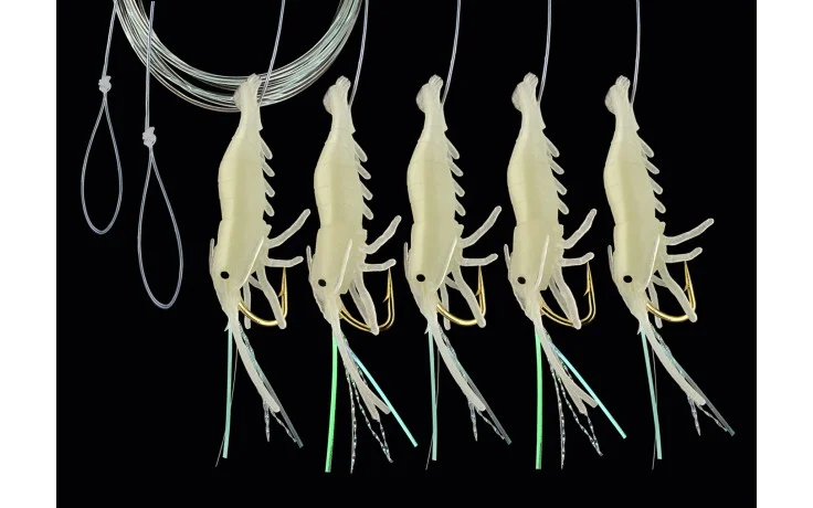 Die DEGA Norway Shrimp Rig Vorfächer sind fängige Köder für das Norwegenangeln. Dieses Set enthält 3 erstklassige Angelköder jeder von ihnen ausgestattet mit scharfen Haken der Größe 8/0. Diese Köder sind speziell darauf ausgelegt, Dorsch und andere Meeresraubfische anzulocken und zu überlisten.